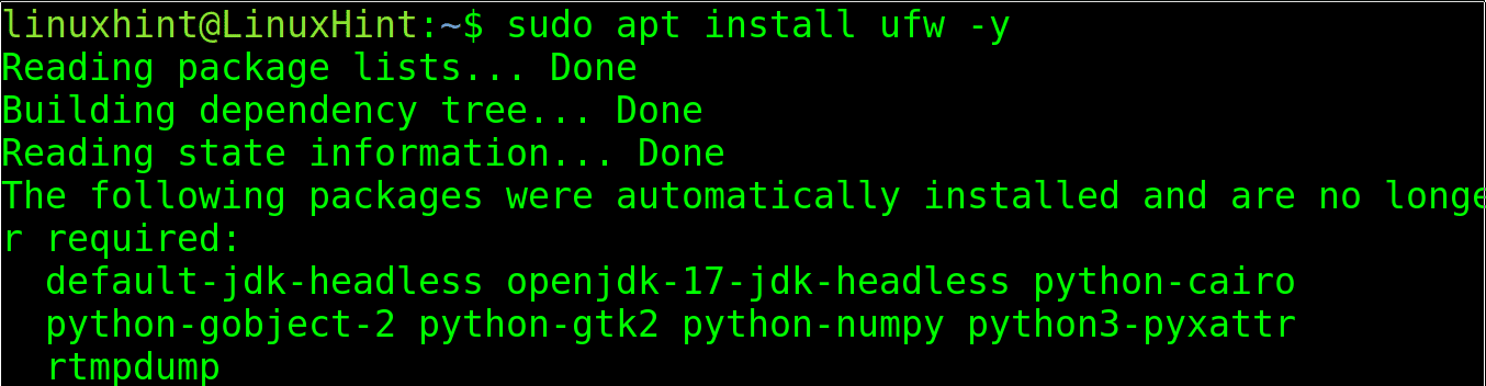 In case UFW isn’t installed, you can install it using the apt packages manager, as shown below.