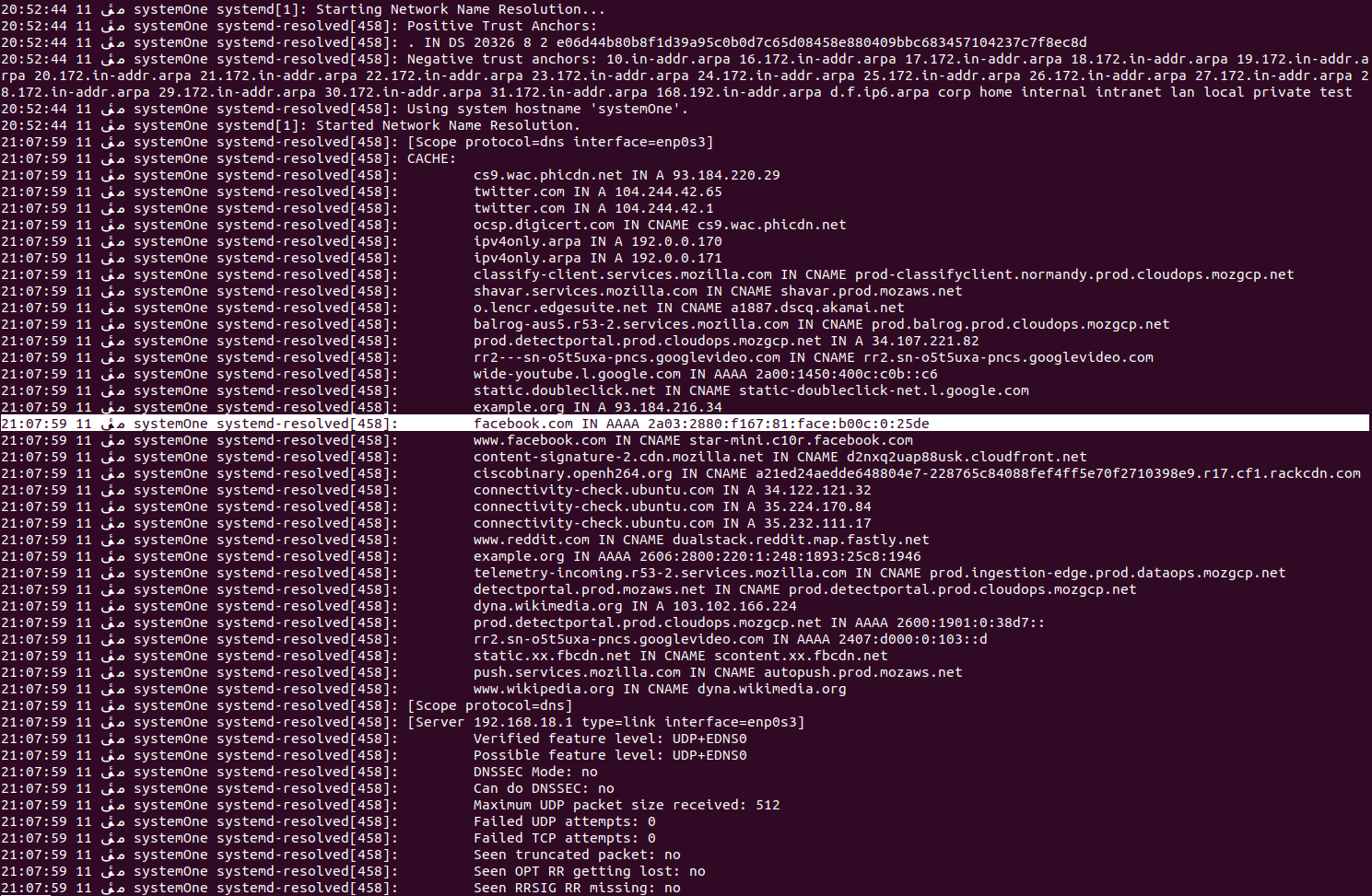 The contents of the DNS Cache on Ubuntu look like this: