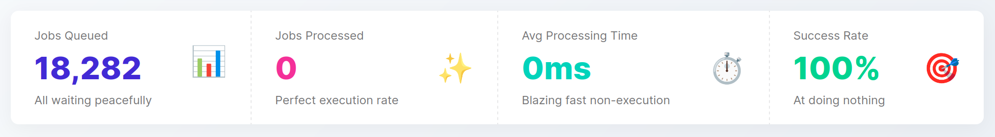 Sometimes the most profound action is inaction. Sometimes the best code is no code. And sometimes, the perfect queue is the one that queues forever.