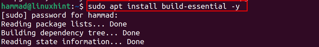 Execute the “sudo apt install build-essential” command and it will install all the necessary packages to install build-essential tools on Ubuntu 22.04. Build essential tools contain the dependencies tools of different packages and compilers. In this blog, we have explained the installation method of Build Essential tools and its usage on Ubuntu using the command line interface.